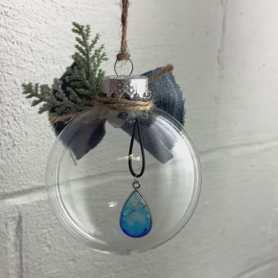 Handmade Denim Bow and Resin Necklace Holiday Ornament / Bulb